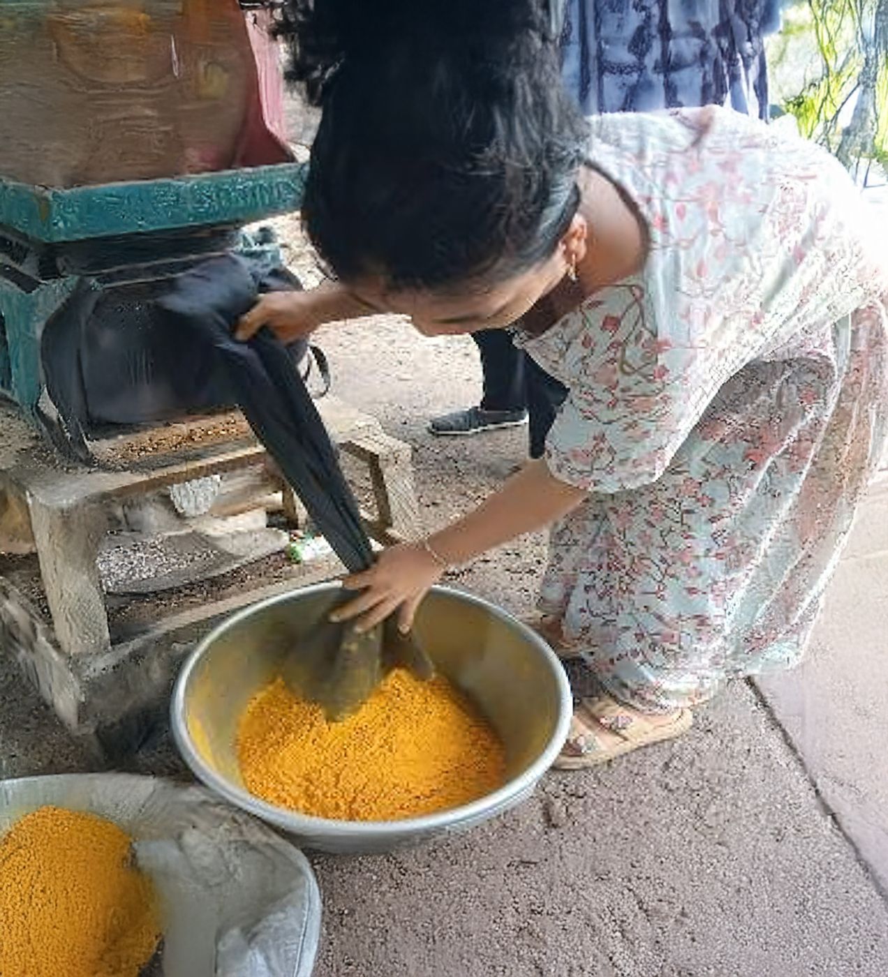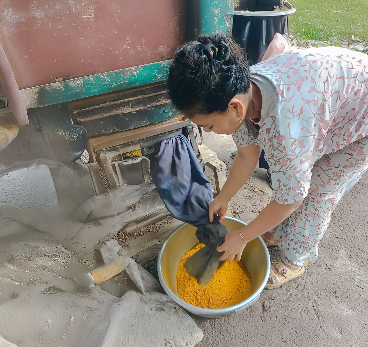 Mengolah kunyit mentah menjadi tepung kunyit, Siangka menggunakan mesin giling. Tetapi sebelum dimasukkan ke mesin, Siangka harus mengupas kulit kunyit. Dicuci sampai bersih. Ia memastikan proses pencucian dilakukan dengan tepat, yaitu menghilangkan bekas-bekas tanah di kulit kunyit. Mengupas kunyit dan menghilangkan bagian kunyit yang rusak. Tidak jarang tangan Siangka dan tetangganya teriris pisau. Tetapi dengan kemauan kuat, kini usaha tepung kunyit sudah bisa diproduksi sesuai permintaan konsumen.