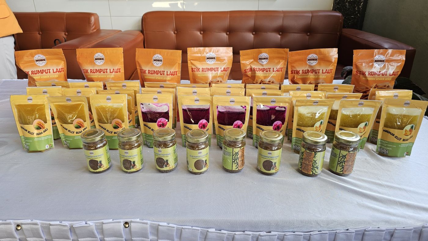Beberapa olahan rumput laut yang dilatihkan kepada pembudidaya rumput laut antara lain stik rumput laut, selai rumput laut dan minuman jeli rumput laut dengan tiga varian rasa antara lain rasa nenas, rasa mangga dan rasa buah naga. Pemilihan buah tersebut karena Buton Utara terkenal menghasilkan buah segar yang cukup baik khususnya untuk mangga, nanas dan buah naga. Guna memberikan penguatan pada produk olahan rumput laut yang dihasilkan, perempuan pembudidaya juga mengenalkan merek MOIKO yang dari bahasa lokal berarti baik, enak, bagus dan indah.