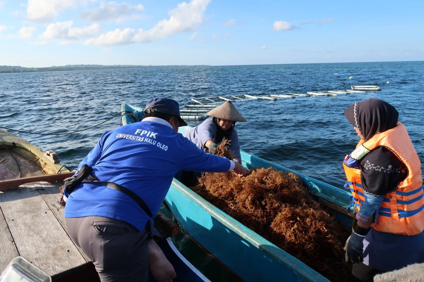 Sebagai upaya meningkatkan nilai tambah hasil panen rumput laut, LPPM UHO bekerja sama dengan Dewan Kerajinan Nasional Daerah (Dekranasda) Kabupaten Buton Utara mendatangkan Dr. Andi Besse Patadjai dan Dr. Asnani untuk melakukan pendampingan dan pelatihan pembuatan olahan rumput laut.