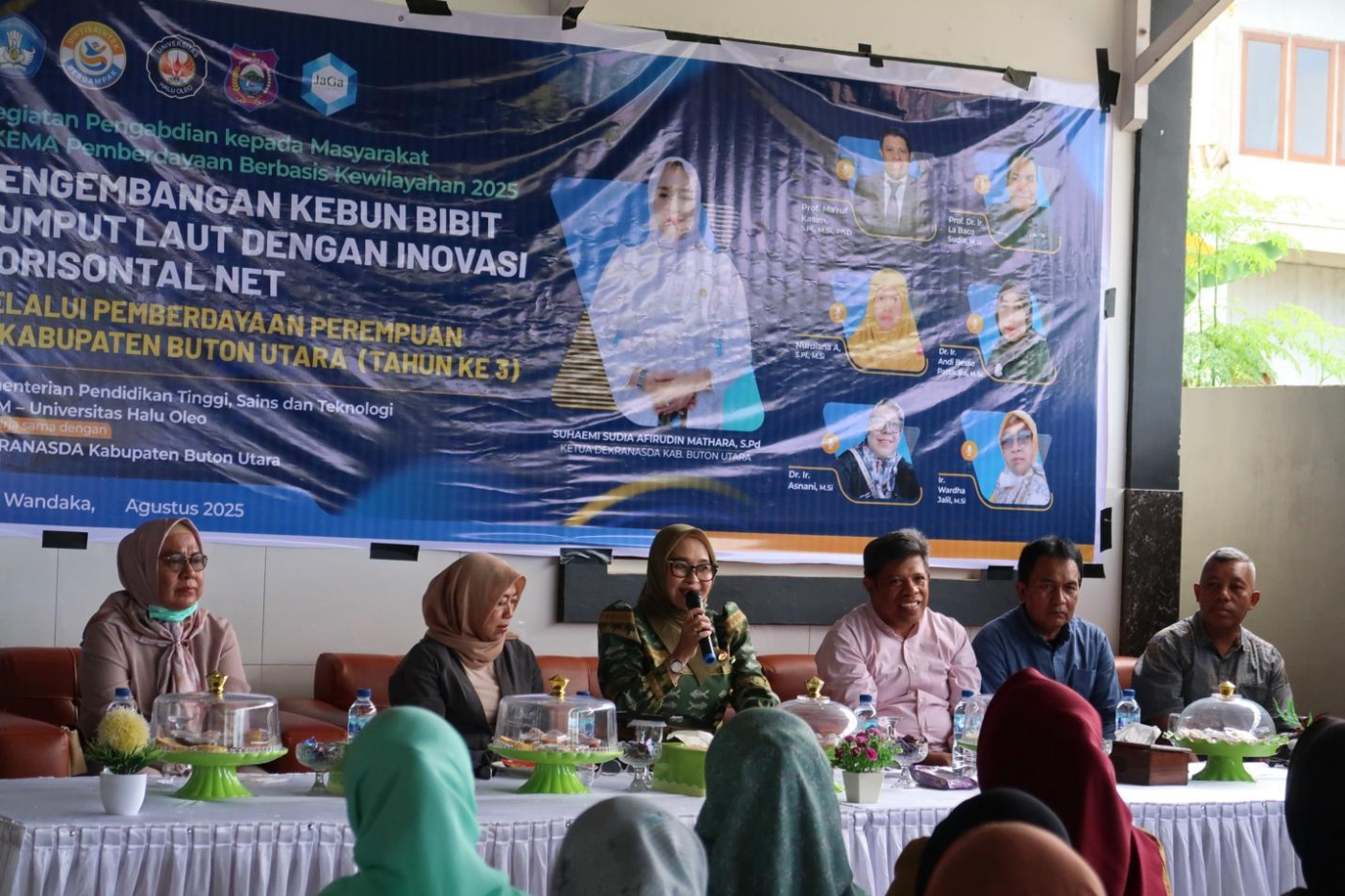 Lembaga Penelitian dan Pengabdian kepada Masyarakat (LPPM) Universitas Halu Oleo (UHO) yang bekerja sama dengan BAPPEDA Buton Utara memberikan pelatihan sekaligus menyerahkan Horisontal Net kepada kelompok perempuan pembudidaya rumput laut Kabupaten Buton Utara. Kegiatan ini merupakan kegiatan pengabdian masyarakat skema kewilayahan yang berlokasi di Perairan Kabupaten Buton Utara yang didukung sepenuhnya oleh Kementerian Pendidikan Tinggi, Sains, dan Teknologi.