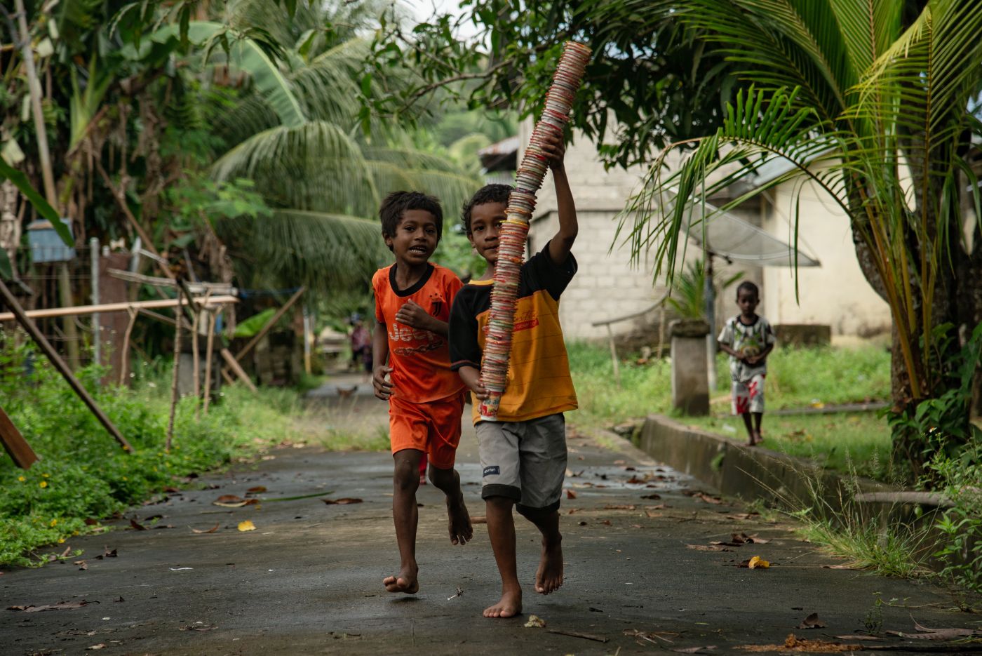 Di sebuah jalan setapak Desa Buan Kataloka, Kecamatan Pulau Gorom, Kabupaten Seram Bagian Timur, Provinsi Maluku, tiga anak sekolah dasar sedang memungut gelas plastik bekas minuman. Mereka memungut limbah itu dengan semangat, lalu membawanya kepada seorang perempuan.